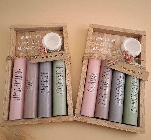 Bei mir findest Du individuell gestaltete, gegossene Einzelstücke in Verbindung mit Klötzchen und Kerzen für jeden Anlass.