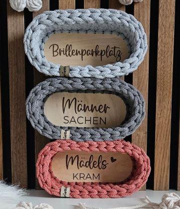 Bei mir findest du Taschen, Körbe, Windlichter und vieles mehr, gerne auch in deiner Wunschfarbe.